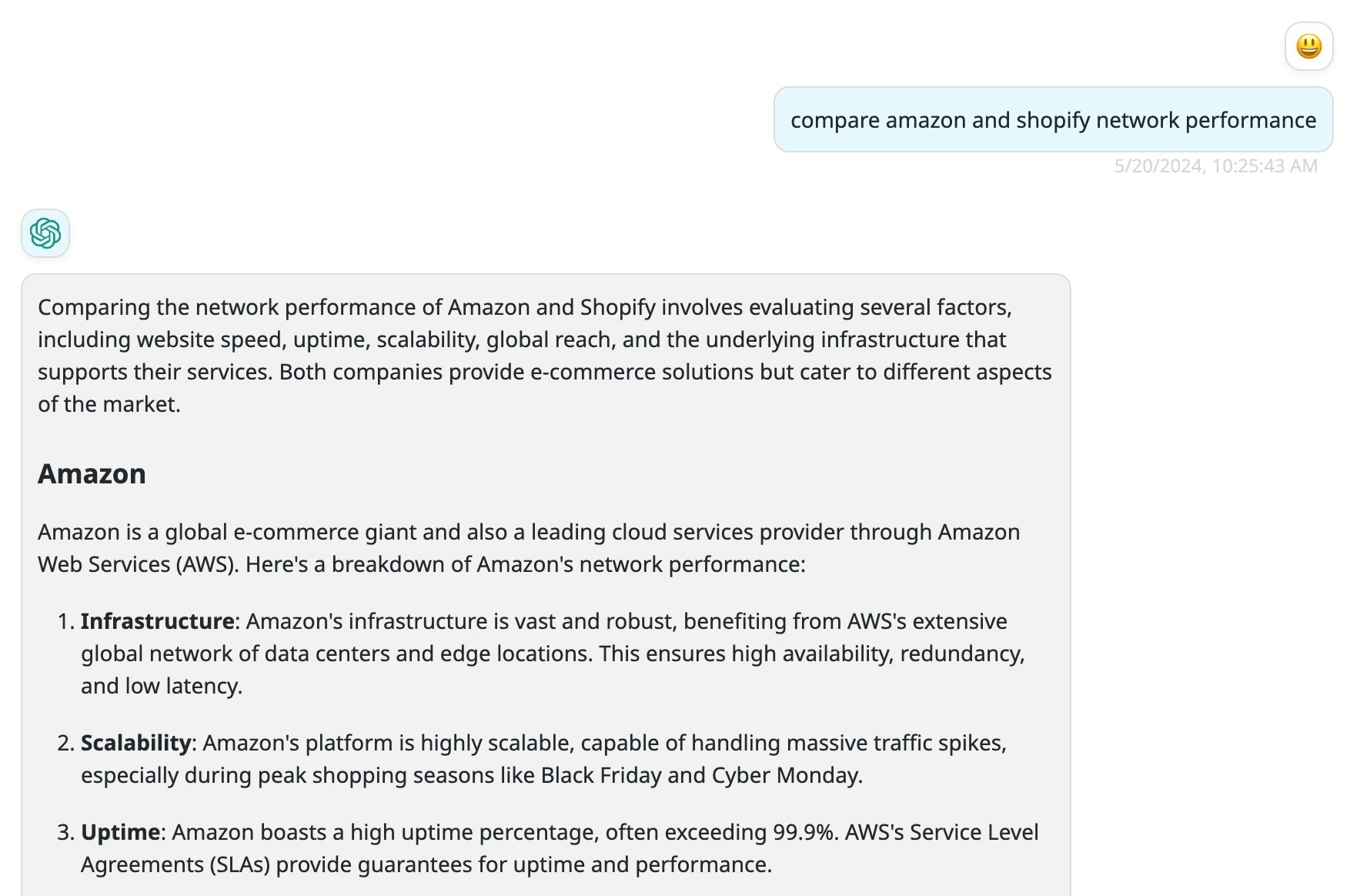 Compare amazon and shopify network performance