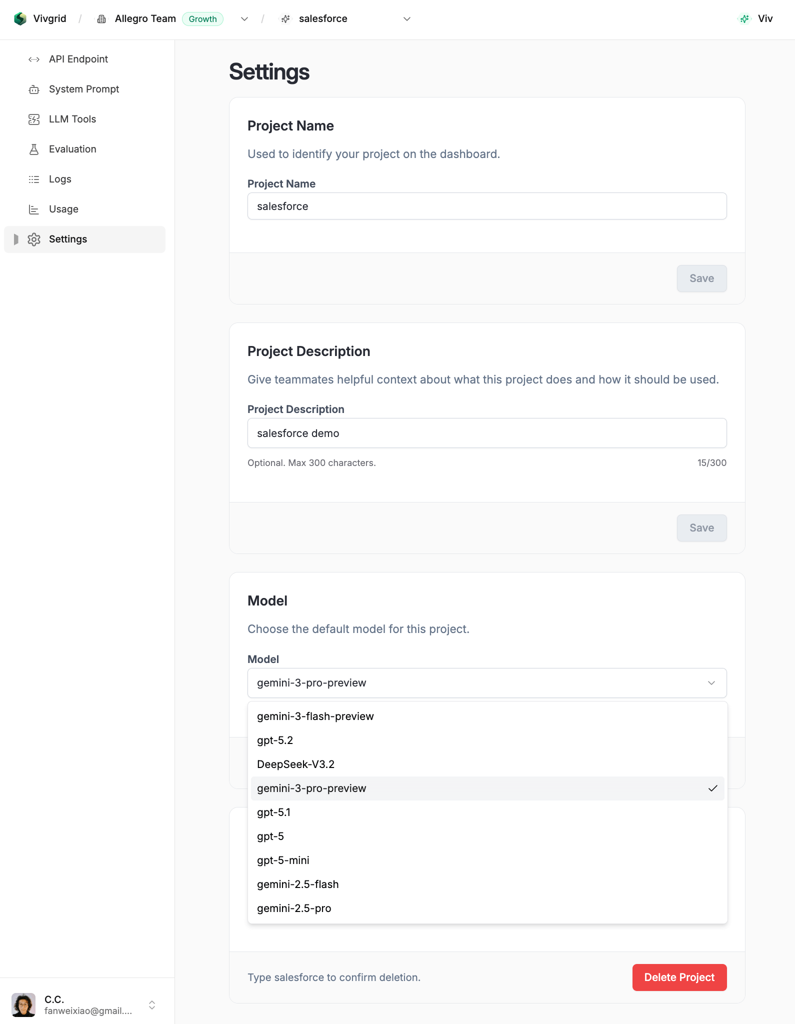 - Upgrade or switch underlying LLMs at any time from the Vivgrid Console